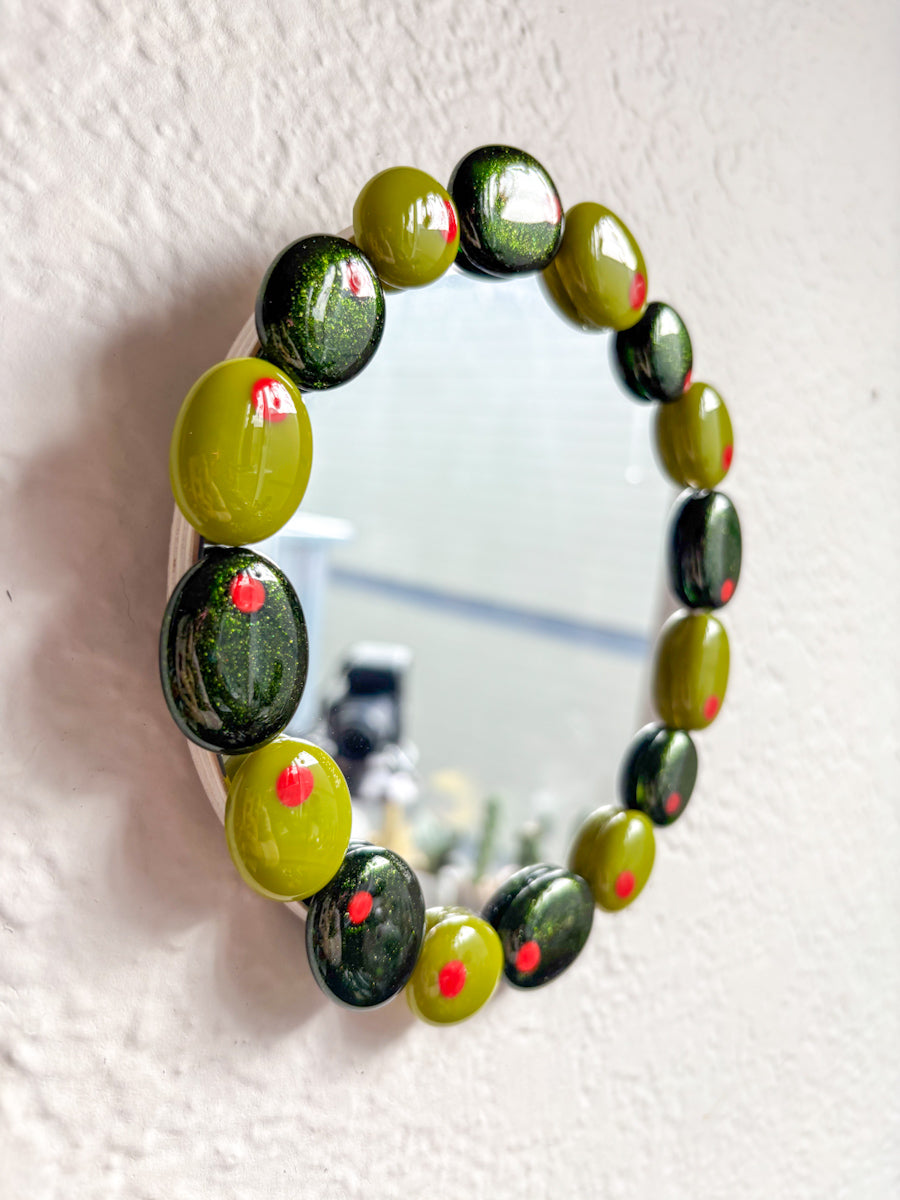 Ahhh, the olive. Perfect for martinis and snacks and even more excellent encircling your mirrored face back to you.