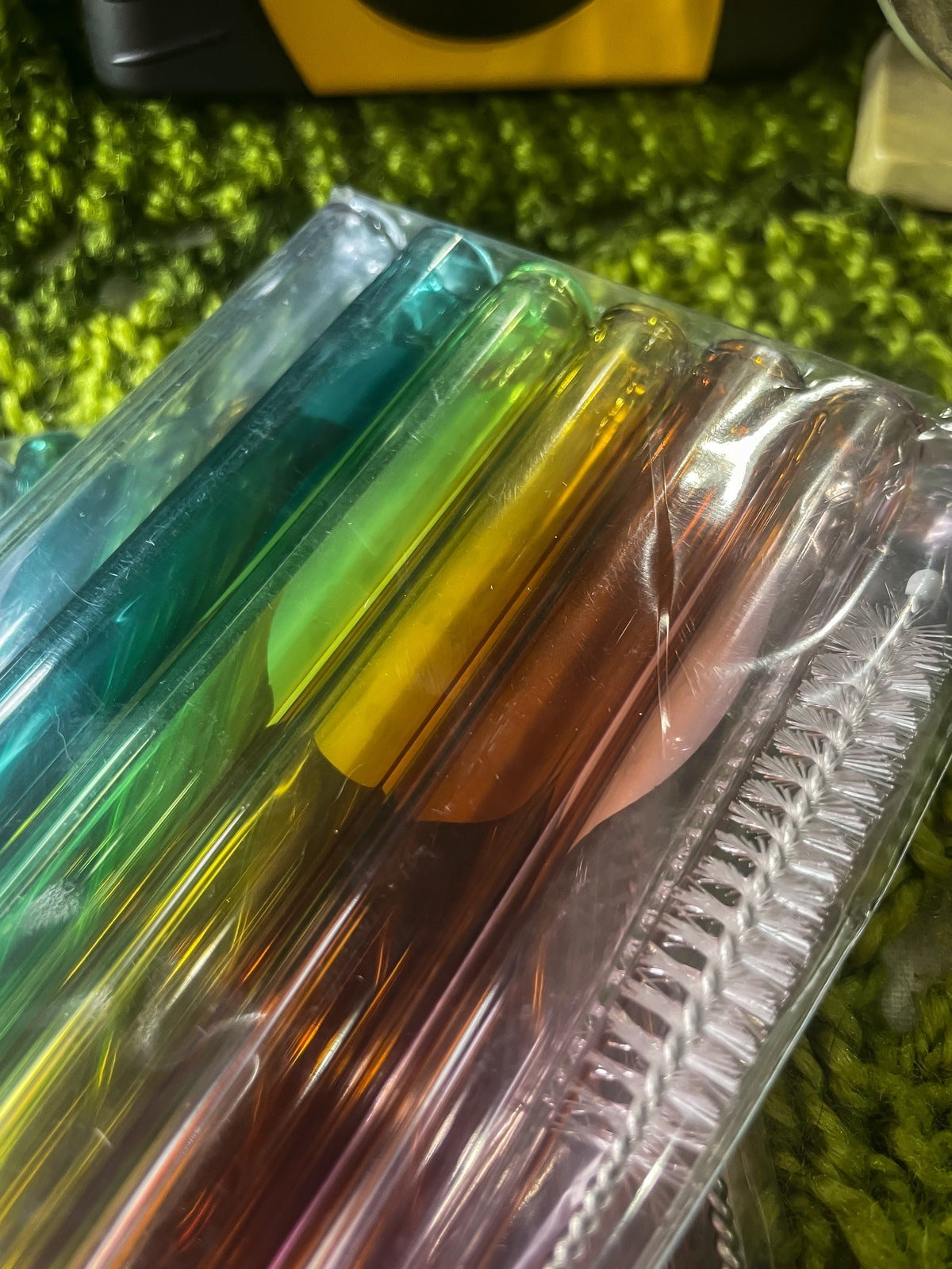 Borosilicate glass straws that are as sturdy and as strong as PYREX a now available in a convenient 6-pack plus a cleaning straw.
