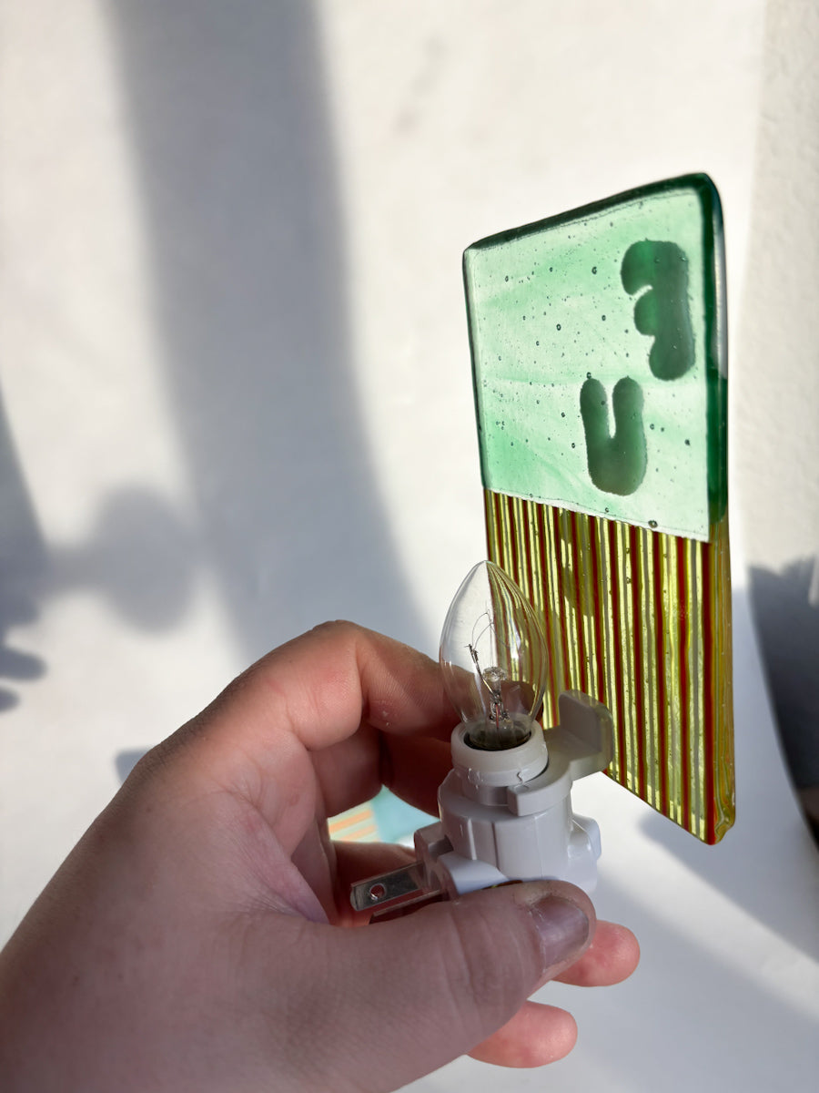 I recently won some patterned glass by Sharon Whelton Glass and decided to use it to make a special edition of night lights. Make sure to grab these one-of-a-kind lights now because I won’t be making them again!